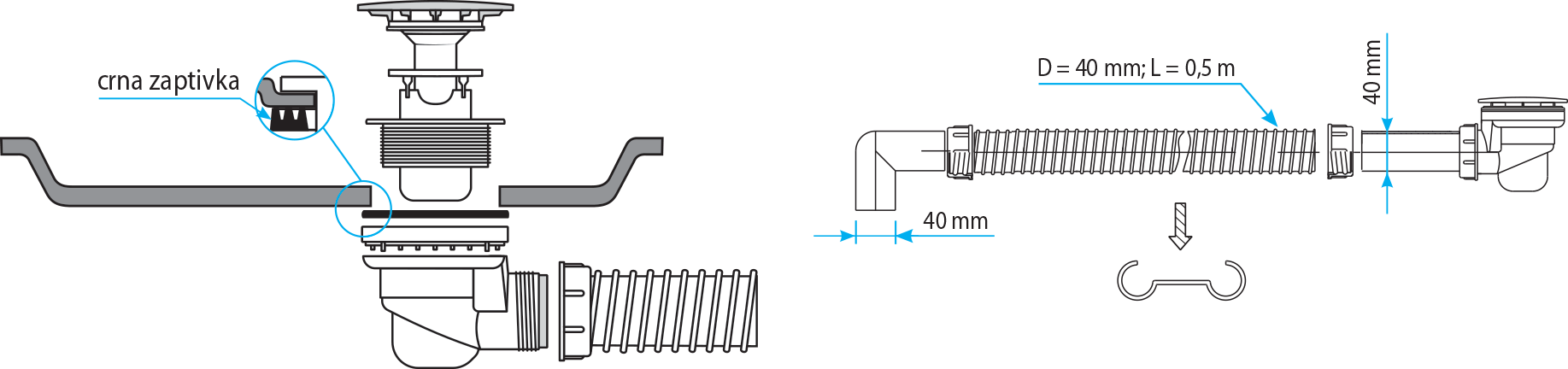 Flexibler Siphon für Duschwannen 90 Lux Verwendungszweck und Installation: