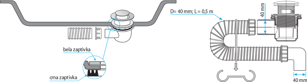 Flexibler tiefliegender Duschwannensiphon Click Clack Verwendungszweck und Installation: