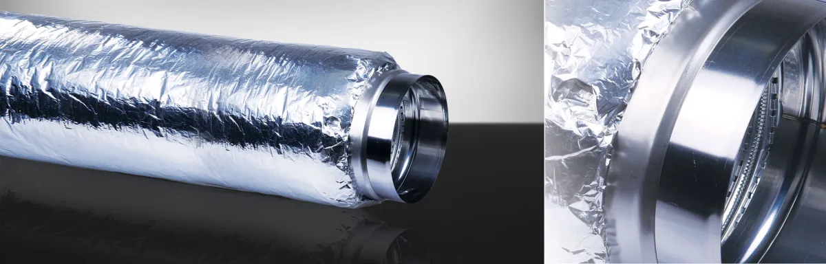 TEXO CONNECTOR ACU ist ein halbflexibler Dämpfer aus einlagigem, flexiblem, pertussiertem Aluminium in Al 99,5-Qualität. Er ist mit einem Außenfutter aus mehrschichtigem Aluminium / Polyester umgeben. Der Raum zwischen dem Innenrohr und der Außenverkleidung ist mit 25 mm dickem Schallschutzmaterial ausgefüllt. Der Texo-Stecker ist standardmäßig an beiden Enden mit rostfreien Metallsteckern ausgestattet. Erweiterungen können an eine starre Rohrleitung oder ein anderes Gerät angeschlossen werden.